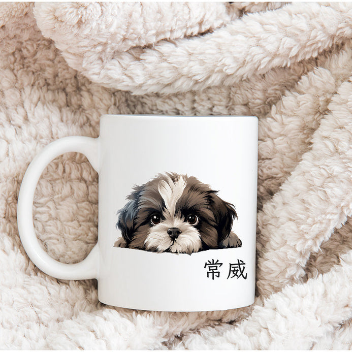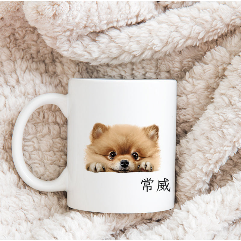 這個杯子上有一隻像躲在某處露出頭的小狗狗,最特別的是,你可以客製化這個杯子,加上你寶貝的名字。