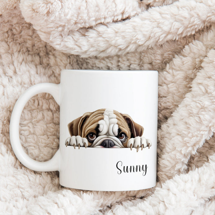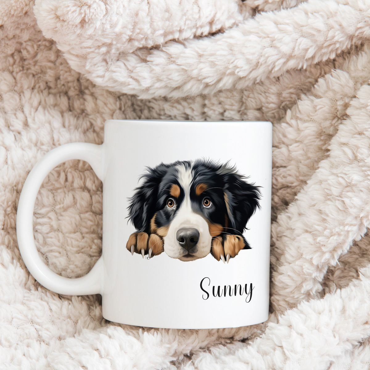 這個杯子上有一隻像躲在某處露出頭的小狗狗,最特別的是,你可以客製化這個杯子,加上你寶貝的名字。