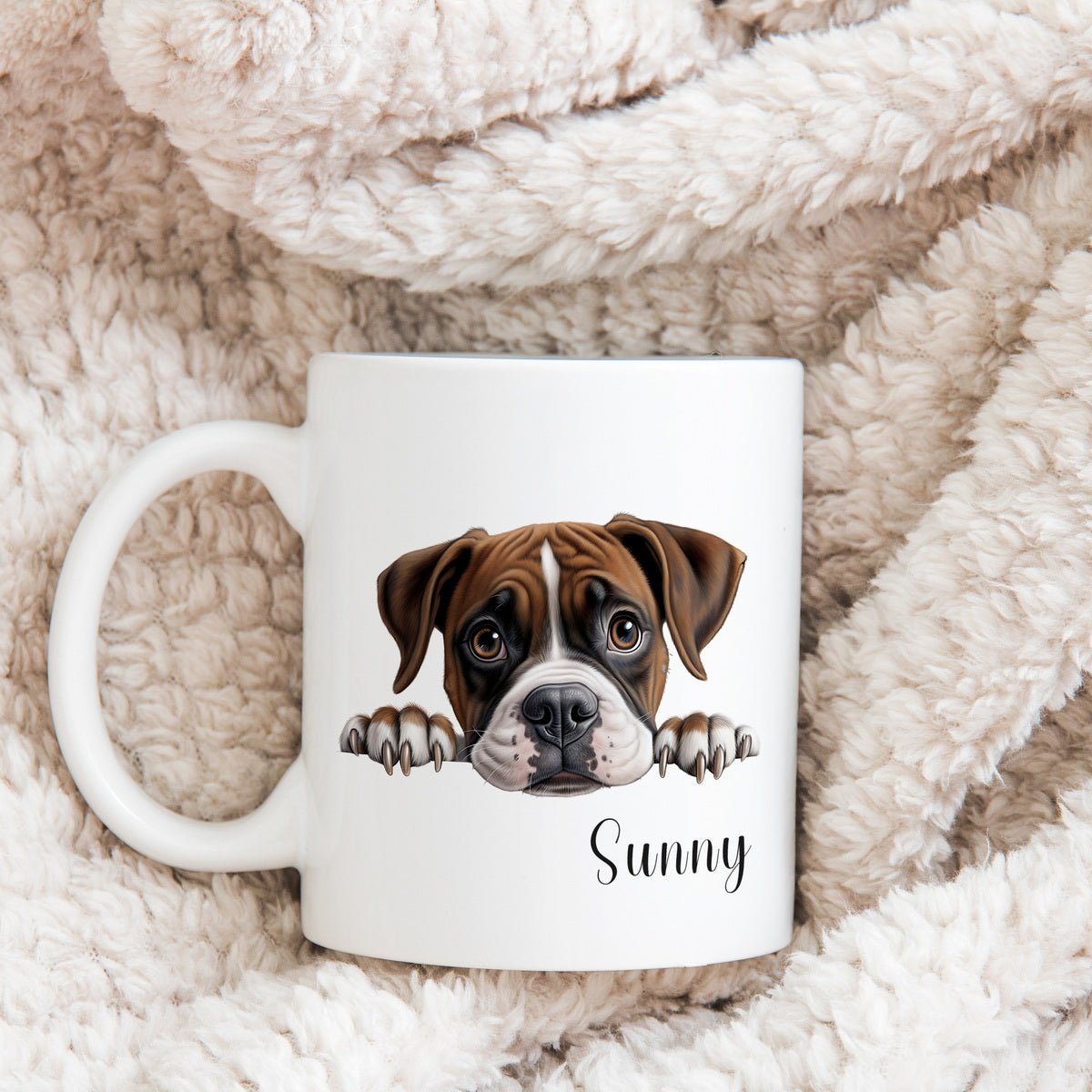 這個杯子上有一隻像躲在某處露出頭的小狗狗,最特別的是,你可以客製化這個杯子,加上你寶貝的名字。