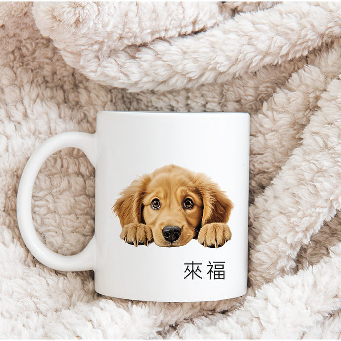這個杯子上有一隻像躲在某處露出頭的小狗狗,最特別的是,你可以客製化這個杯子,加上你寶貝的名字。